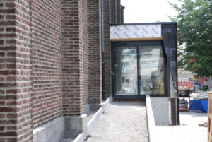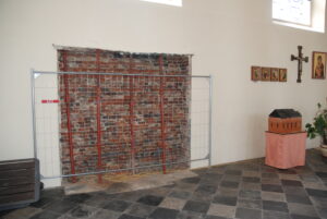 Le confessionnal de gauche a été déplacé pour percer le mur de la nouvelle entrée.