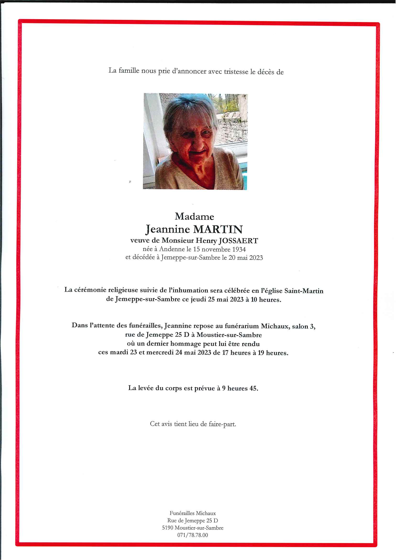 Jeannine MARTIN, veuve de Henry JOSSAERT,