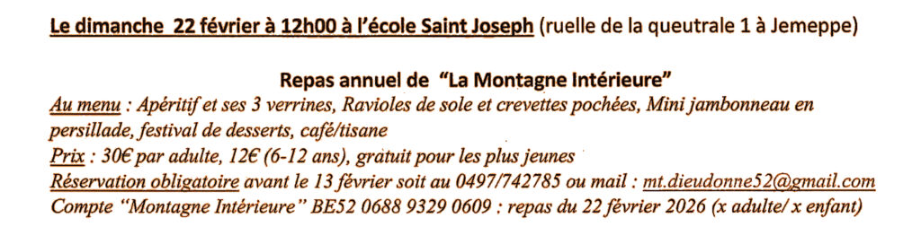 Le dimanche 22 février 2026 à 12h00 à l’école Saint Joseph